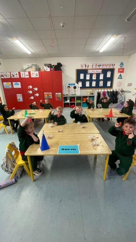 Tá ár Naíonáin bheaga ag baint an-taitnimh as clár Food Dudes, ag triail a lán bianna sláintiúla nua. Tá siad ag foghlaim thábhacht an ithe shláintiúil agus tá siad lán fuinnimh ó roghanna maithe bia a dhéanamh!